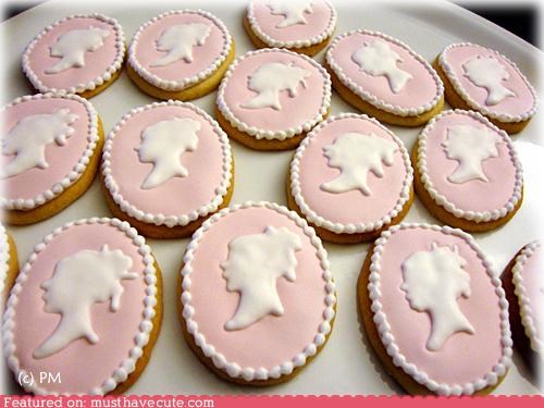 I've always had a fondness for cameos and even wore one for an embarrassing period during the early 90's when we were all into velvet chokers and snap-crotch bodysuits. I'm really glad my mom never relented and let me get that Starter jacket I begged for. I'd feel much less shame eating a pretty cameo made of icing.