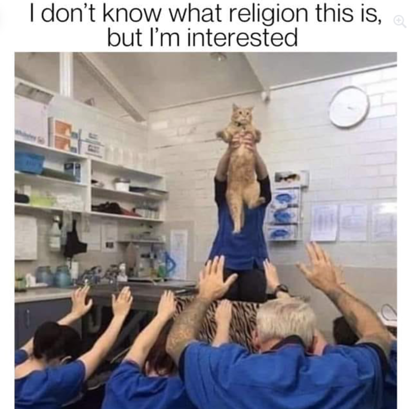 If cats were a religion, you know I'd be there in a heartbeat. I definitely worship my own cat, so why not add more into the mix? When I come home, my little kitty and I have our rituals. Our snuggling, his little meows and hops around my legs, I feed him, pet him, talk to him. He moves around me with an arched back, quietly chirping and rubbing against me to give me warmth and love. It's the best feeling, and I worship my little man.