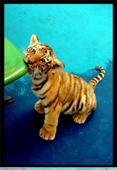This week's contest was no contest with tiger cubs coming out well ahead of piglets. This cub is so excited about the win, he can't help but nomming everything he sees!