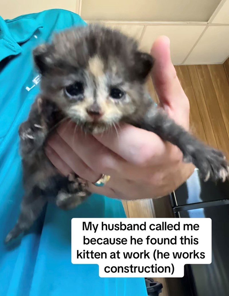 Construction worker rescues a kitten that was stuck behind drywall, he takes her home to wife, who slowly nurses the sweet baby back to health: ‘Honestly, a miracle’