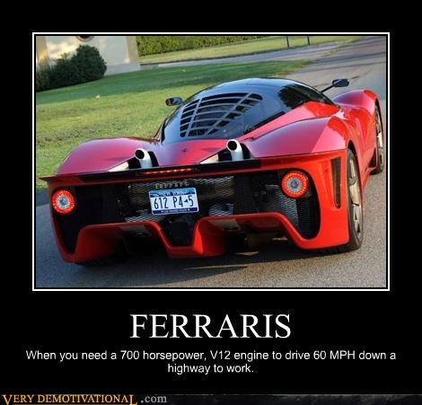 FERRARIS when you need a 700 horsepower v12 engine to drive 60 mph down a highway to work.