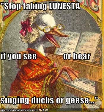 "Stop taking LUNESTA if you see or hear singing ducks or geese..."