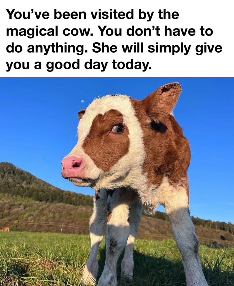 And that is just the start of it. Now that you have been blessed by this cow things are only going to get better from here on out. You will now be fully available to enjoy the rest of these cute cows and by the end of this collection you should find your emotional cup overflowing with positivity. After all, if there is something that cows are known for it is their oversized joy which they proudly display when engaged in play. So if you have been working hard like a mule, then take some time for yourself now to play like a cow.
