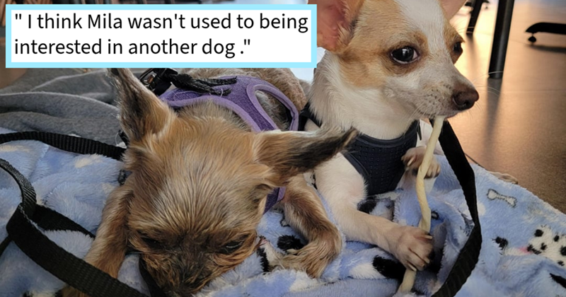 The heartwarming story of the lonely senior pupper who got a tiny mexican puppy sibling and could barely contain her heartfelt excitement that she’d never be alone again, pawrent says: ‘She would "jump/fall" next to her to cuddle.’