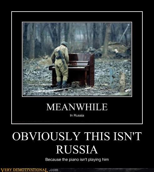 OBVIOUSLY THIS ISN'T RUSSIA because the piano isn't playing him