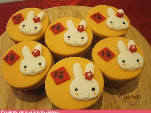 Happy Chinese New Year! Yesterday was the big day, celebrating the year of the rabbit. Had I had some of these cupcakes around, I surely would have celebrated! So Gung Hay Fat Choy to you and yours, enjoy some bunny cuteness this year!