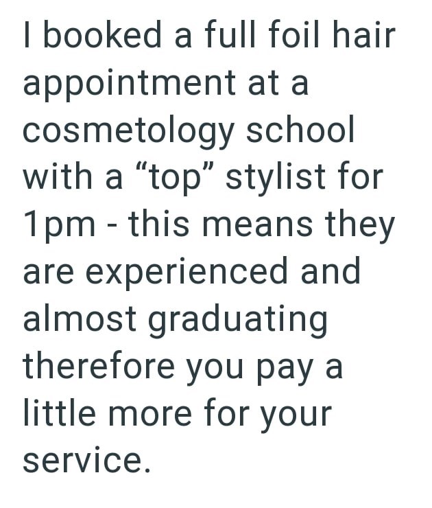 Client demands to stop her appointment at hair salon school after being stuck there for 8 hours, then refuses to pay for the half-done service: ‘The situation was extremely unprofessional’