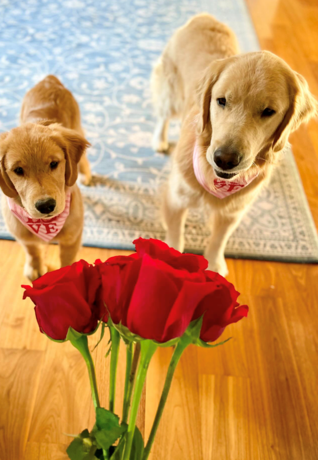 Showing up with a rose and that expression is a guaranteed Valentine win. You can tell this dog practiced the entrance and fully expects applause. The flower is sweet, but the real gift is the effort written all over that face. It’s the kind of moment that makes everything else stop for a second. Romance looks pretty good covered in fur.