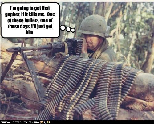 I'm going to get that gopher, if it kills me. One of these bullets, one of these days, I'll just get him.