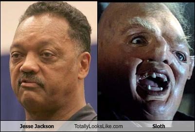 Jesse Jackson Totally Looks Like Sloth OH MY GOD WHAT HAPPENED TO THAT DUDE'S FACE?! But Sloth is rather handsome in a unique way. You see what I did there?