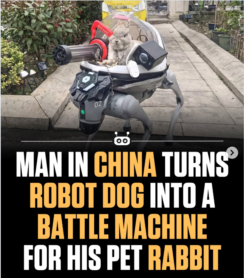 The mechanism is made from converting a Go2 robot “dog” from Unitree to a transportation system and adding a cockpit with speakers and a mounted prop that we're not allowed to talk about here. Let's just say that it looks slightly alarming, and we're glad that the architect clarified that it didn't work. The bunny sits safely inside the transparent bubble while moving through crowds and across different terrains.