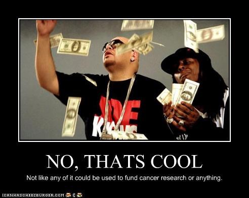 No, That's Cool not like any of it could be used to fund cancer research or anything. (Big Pun, Lil' Wayne)