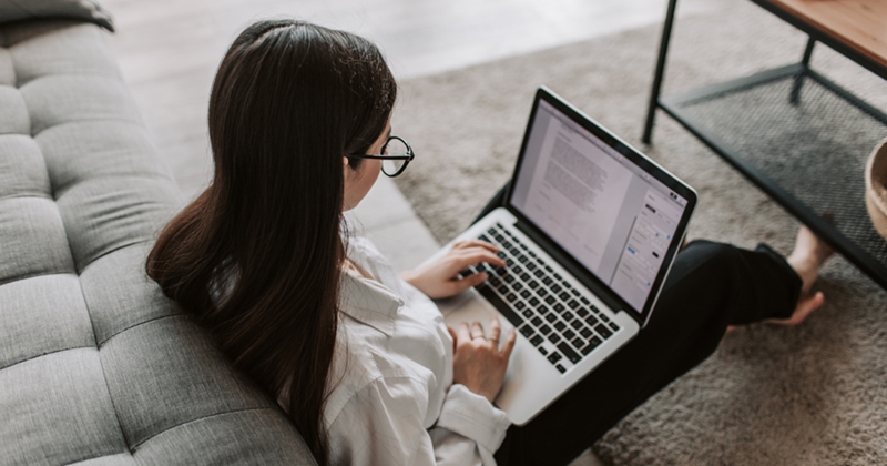 Woman Working At Home Using Her Laptop