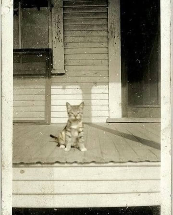 We cannot say for sure, but it really looks as though this cat is the first cat’s father, or at very least this cat is what the first cat grew into. Other than that we have little explanation for how they came to look so similar. Unless it is that cats back in the day all had the same sort of facial expression in photos. As though they had developed a consensus that they did not like the idea of hoomans photographing them and so they all decided to avoid looking cute in their photos at all costs.