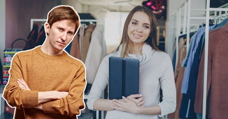 This customer is pulling out every page in the book, hoping something sticks in the process. At the end of the day, you have to respect his game. Is he delusional? Sure. But he's also hilarious. We feel bad for the employee, who probably thinks that Ashton Kutcher is going to jump out from behind the sales rack with a camera.