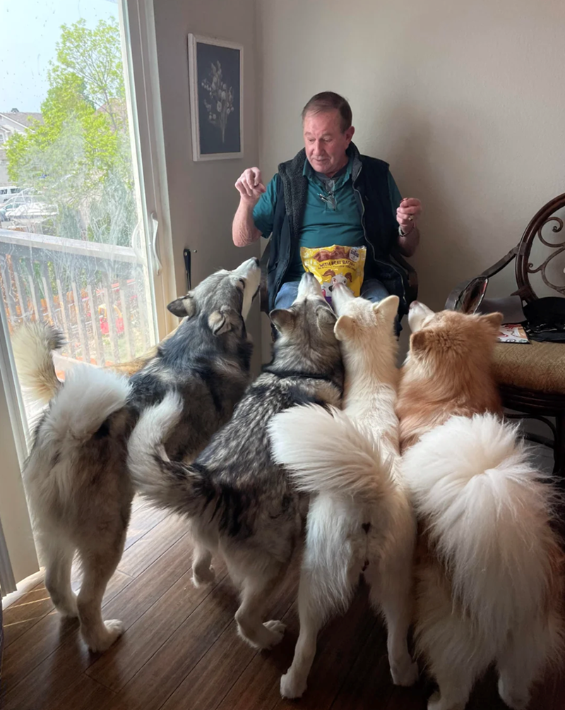 Retired widower once known as the "grumpy old man" finds friendship in neighbor's pack of Alaskan malamutes: ‘[He] would come over once a week to give my dogs treats that he bought specially for them’