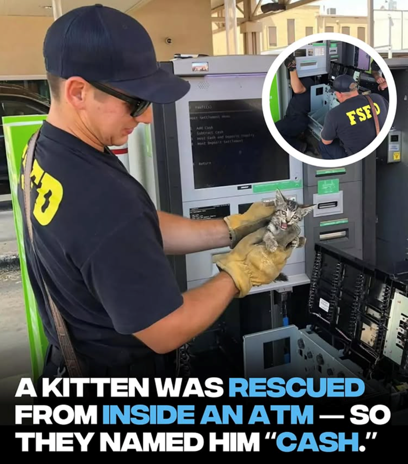 How many hoomans does it take to rescue one kitten? Well, apparently a lot. A whole crew of firefighters arrived to assist in the rescue, along with the ATM technicians. That seems like a lot of manpower for one kitten, but as you can see, the kitten is very feisty. If the kitten was bold enough to climb into an ATM machine, you know they're going to be a curious little troublemaker. We say that with the most love in our hearts.