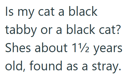 Is my cat a black tabby or a black cat? Shes about 11 years old, found as a stray.