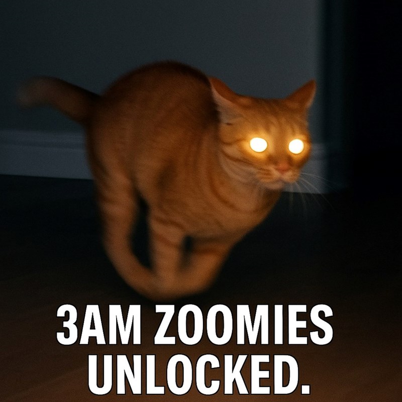 Ah yes, the sacred Hour of Chaos. When the household is asleep and your cat suddenly remembers they are, in fact, a finely tuned predator.