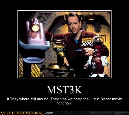 MST3K if they were still around, they'd be watching the justin bieber movie right now.