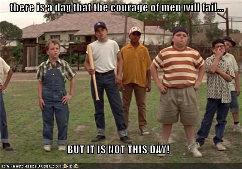 there is a day that the courage of men will fail... BUT IT IS NOT THIS DAY! (The Sandlot)
