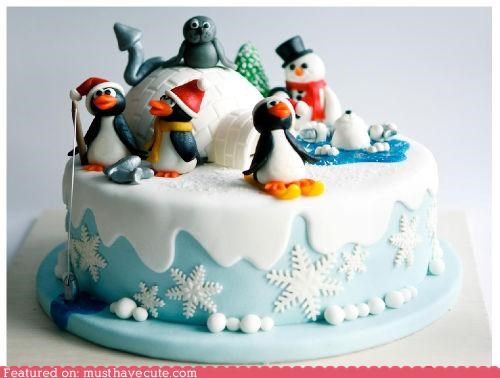 I know, I know, polar bears and penguins inhabit opposite poles. I'm willing to overlook it when there are penguins fishing off the side of a cake. I mean really, does it get any cuter?