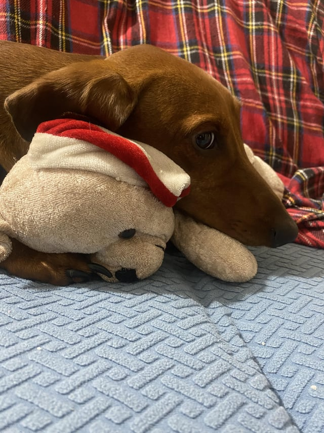 You know when you have something for a seriously long time, you love it, you use it all the time, it has literally become a part of your daily look. But then, one day, you notice something about it, you see a part of it you have never seen before and you find yourself wondering how on earth you have never noticed that part of it before. Well, that is exactly where this doggo is right now, noticing a new part of his favorite toy that he has never seen before and as many bottoms do, it looks like it smells pretty bad.