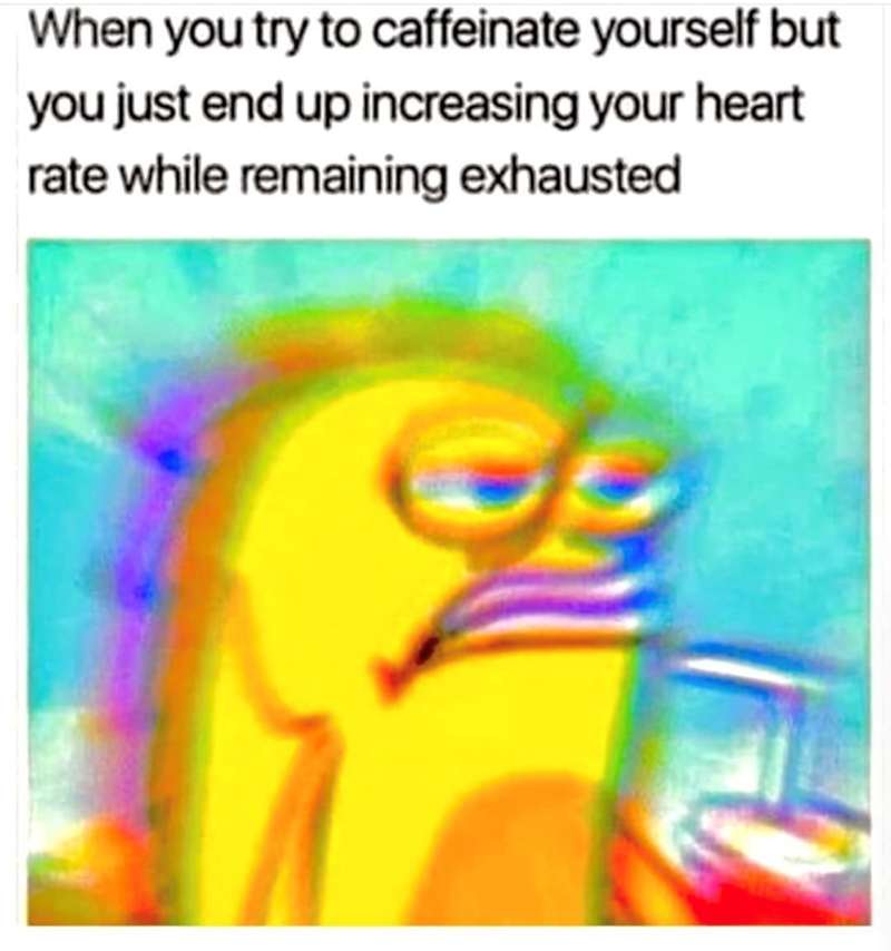 That's why I need memes to keep me grounded. These fast memes are able to keep up with my caffeinated-self and help me slow down, at least for a second.