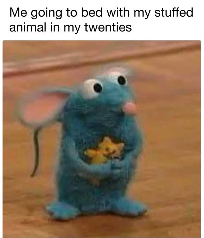 Who said we're not allowed to have stuffed animals in our twenties? I'm of the opinion that we all should have stuffed animals to comfort us when times get tough. Let it be clear that you shouldn't stop in your twenties, thirties, forties, fifties, etc. A stuffed animal is a friend for life, and yes, that means you have to bring it with you wherever you go.