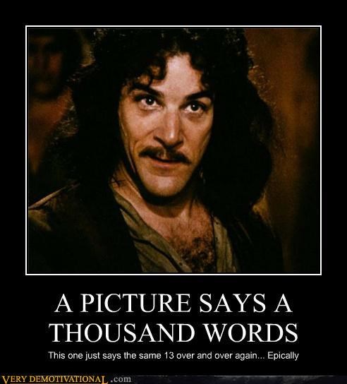 A PICTURE SAYS A THOUSAND WORDS this one just says the same 13 words over and over again. Epically.