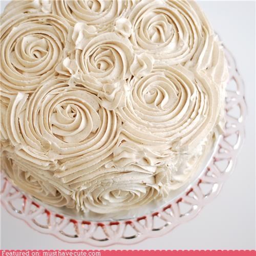 First, I apologize that I was unable to find a photo of this cake with a slice taken out of it. It's red velvet and I'm sure devastatingly beautiful. I'm super impressed with the buttercream piping skills on display here. Those roses are GORGEOUS. So I guess I can see why they didn't want to slice it in the photo but come on, throw us a bone.