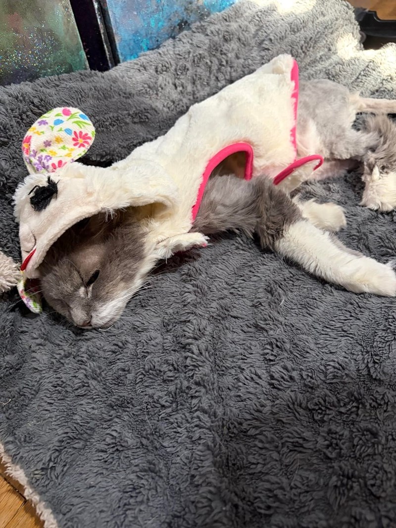 "Update on Stella: the emaciated, ab*sed cat, confined to a bathroom for 10 years - mats are removed and she’s ready for her new life with her loving home!"