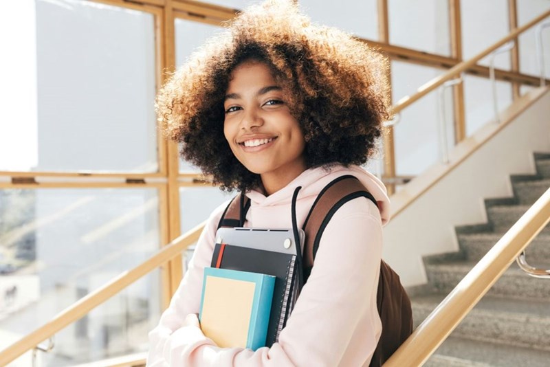 A high school student smiles after getting a passing grade on a science test for the first time.
