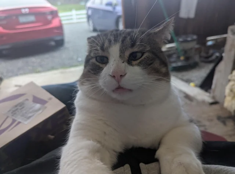 Just looking at this precious picture you see the connection this cute cat has with her chosen human. A cat who sprawls like this on a person, leg totally hanging in there, can only describe a cat who's head over heels with this specific human. We're so glad to know this man doesn't ignore the love bombing this cat is showering him with. It would be the “easy” route to dismiss her as another stray cat living near the property. But this man chose this cat just as much as she chose him. Truly, this adoption was meant to happen.