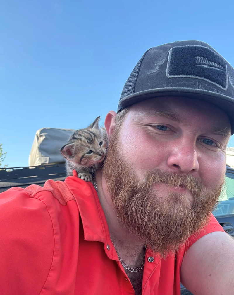 'You belong to me now, got it?': Tiny feral barn kitten leaves animal-loving farmer no choice when she wholesomely adopts him to be her new dad