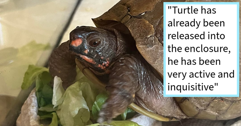 Holy heck that is quite the investment in this sweet lost creature. We cannot remember the last time we invested in ourselves so much, let alone a turtle we had just met. Heck, even the flowers are quite the pampering addition to this reptile’s life. The last time we got any kind of flowers was on Valentine's Day and let's say that they were nowhere near as thoughtful, pretty and suited to our taste as these. But we suppose that is the treatment a creature who has been hurt and lost for so long deserves, if not far more than that.
