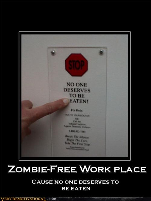 ZOMBIE-FREE WORKPLACE Cause no one deserves to be eaten.