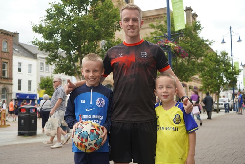 Manchester City fans are flying their team's flag at the stadium before the game.