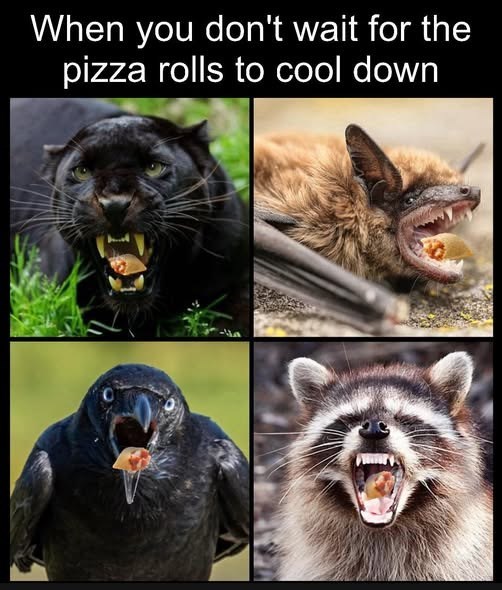 See what we mean when we say wild animal memes are wonderfully weird? Just take this hot pizza rolls meme for example. It would never work with images of actual people spitting out boiling food that was just out of the oven. Honestly, it would be disgusting. But put a growling jaguar or a hissing raccoon with that caption and, voila, you have a wonderful and strange meme for the masses. And it's all done with the wildlife that shares this planet with us.