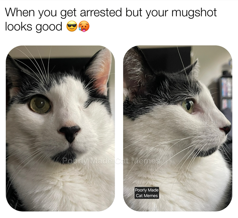 When you get arrested but your mugshot looks good Poorly Made Cat Memes Poorly Made Cat Memes