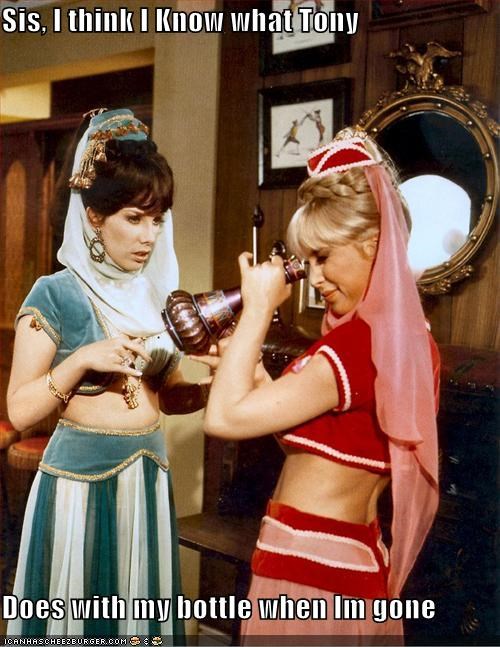 Sis, I think I Know what Tony Does with my bottle when Im gone (I Dream of Jeannie)