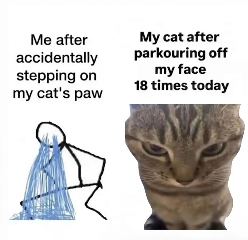This… was either the cutest moment ever or the funniest. There is no in between. It was either that the kitten was sitting on this person's chest, gently exploring their face with their itty bitty paw. Or they got smacked. Right in the face. For what crime, we will never know. But when it comes to kittens, it was most likely for breathing in the wrong direction. Either way, whether it's “aww” or “lol”, we love this picture.