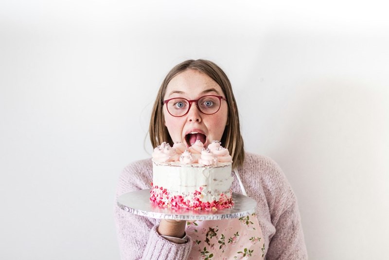 Low-cost birthday cake delivered in a box from a last-minute order on a food delivery app.