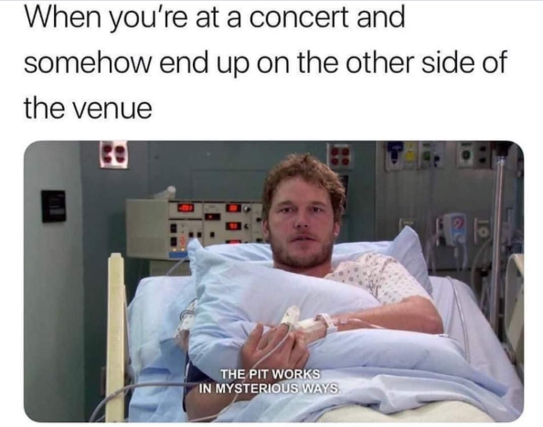 When you're at a concert and somehow end up on the other side of the venue THE PIT WORKS IN MYSTERIOUS WAYS.