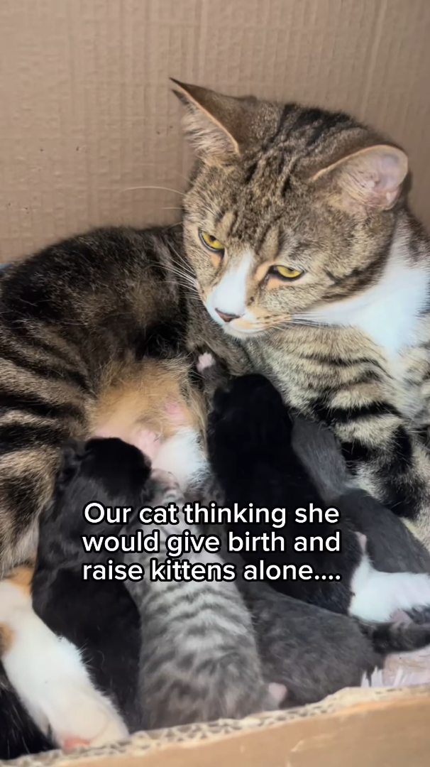 Cats bond with all kinds of creatures throughout their lives. They don't know the difference between a pitbull and a golden retriever. If they bond with an animal, they bond with that animal, without knowing all the potentially spooky stories about other similar animals. We understand the concern that people might have when it comes to this breed of dog being around itty bitty creatures, but we trust this kitty more than we care about the stories. The momma cat's judgment is what matters most, and clearly, she has decided that this pupper is a worthy and trustworthy midwife and babysitter.