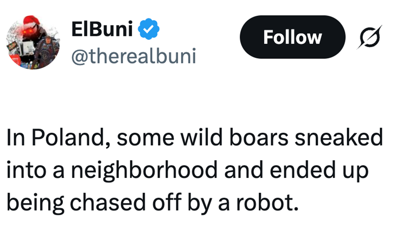 Autonomous robot chases wild boars raiding Polish neighborhood out of the city goes viral, users react: 'This isn't what I expected from the future'