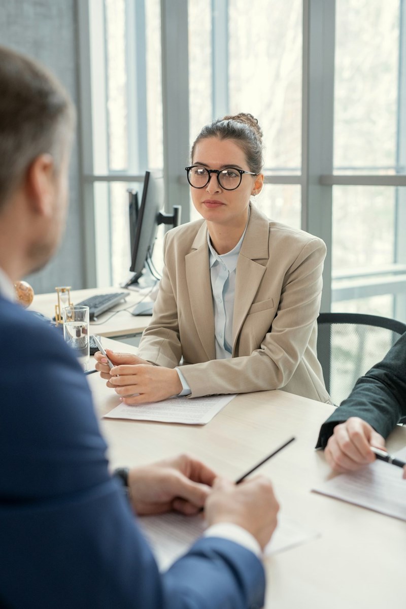 Woman being interviewed for a job looking professional -