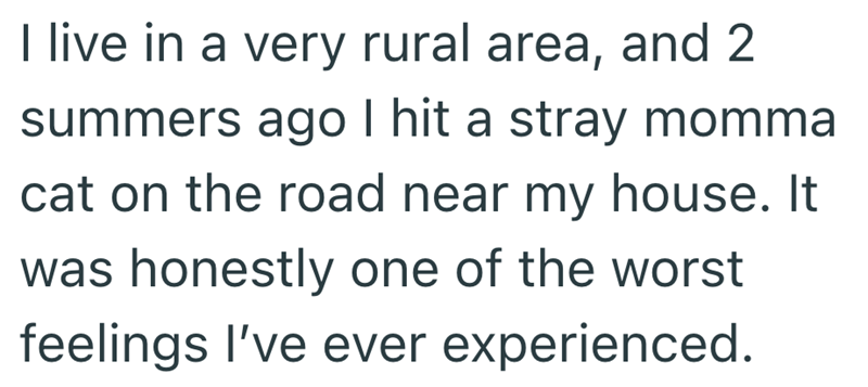 This is just being a good person. You saw what was happening and didn’t ignore it. You stepped in, helped, and kept going back to help more. That’s not easy and not everyone would do it. You actually made things better for these cats, and that matters.