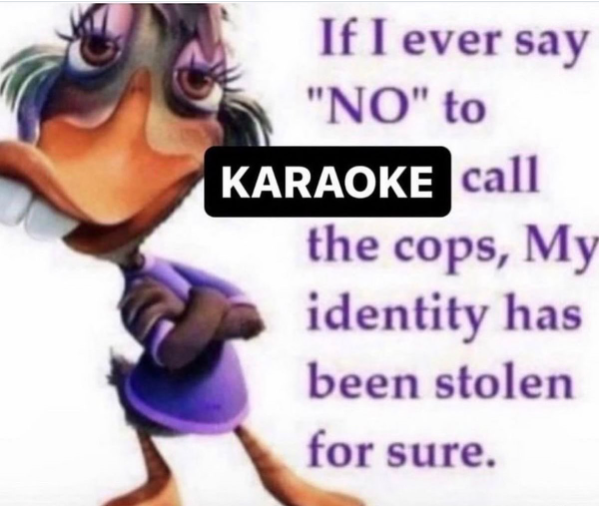 If I ever say "NO" to KARAOKE call the cops, My identity has been stolen for sure.