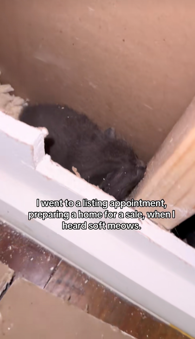 Real estate agent hears faint meowing during a house walk-through, discovers a kitten in the wall, and then five more and a mama in the ceiling: ‘We rescued them all!’